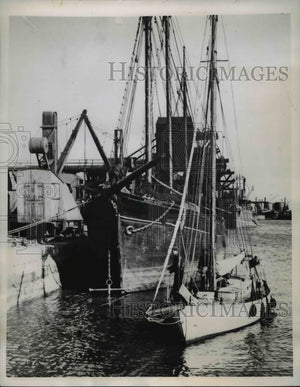 1946 Press Photo of Robert W. McKinley and Walter Kumeski on their small yacht.