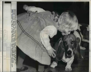 San Francisco- "Tray", a basset hound seems to worry less as 2-year-old Jo Ahton plants a big kiss on his forehead at the last day of 50th Annual Dog Show.