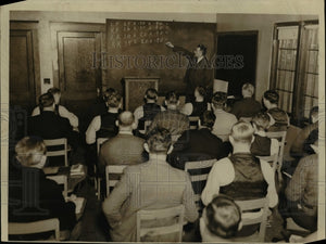 1938 Press Photo of a class in a police academy. Lt. Lenahan at chalkboard.