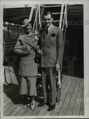 1934 Press Photo Newlywed Alexanders Sail for Bermudan Honeymoon