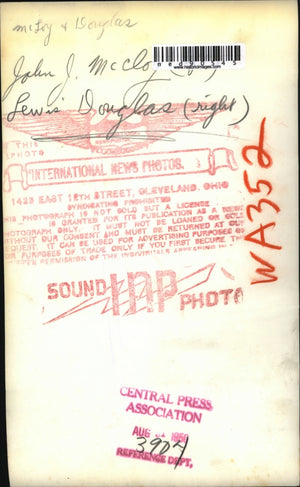 1950 Press Photo Lawyer John J. Mccloy w/ Lewis Douglas (right)