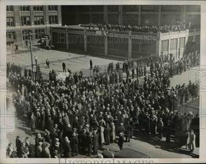 1937 Press Photo Crowd of strikers at the Dodge Division of Chrysler Motors