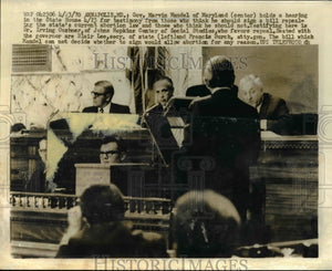 1970 Press Photo Gov.Marvin Mandel of Maryland holds hearing in the State House