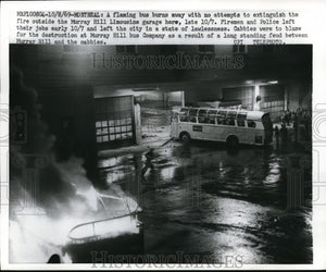 1969 Press Photo Flaming bus by cabbies in Montreal