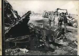1970 Press Photo of workers looking over one the seven wrecked semi trucks on