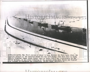 1956 Press Photo of the first ships to move through the Suez canal during the