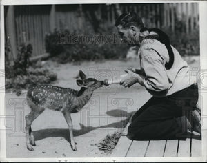 1934 Press Photo Cleo, A wild California mule fawn is being fed by the caretaker