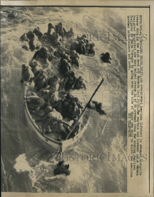 1965 Press Photo An overcrowded American Lifeboat in the high seas off Bermuda