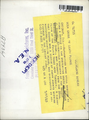 Chicago,Illinois-Authorities were seeking the motive of the mysterious death of Arthur J. Sikora, 39-year-old Engineer of the Wright Aeronautical Corp. who plunged from the 20th floor of the Palmer House.