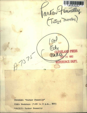 1952 Press Photo "Parker Fenelly" Show, by Titus Moody every weekdays