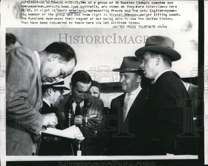 1956 Press Photo Group of 18 Russian Olympic coaches & newspapermen in L.A