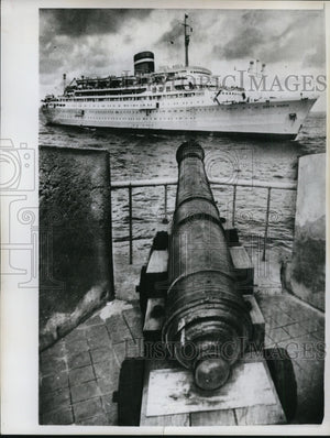 1961 Press Photo Santa Maria sail pass a cannon, once protected Curaco Harbor