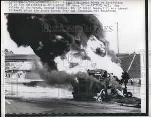 1963 Press Photo Columbia SC A gasoline tanker truck crashed & burning