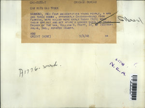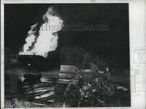 1948 Press Photo Hammond Ind burning wreck of gas truck & auto collision