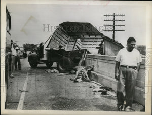 1949 Press Photo Sarasota Fla tractor trailer jack knifed over a bridge