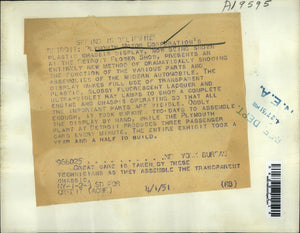 1951 Press Photo Detorit MichPlymouth Motor Corp techs & plastic engine model