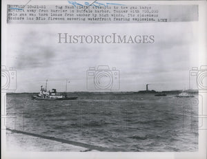 1951 Press Photo Tug Nash (L) attempt to tow gas barge Morania away from barrier