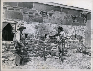 1961 Press Photo Two guys pictured at a historic place one afternoon