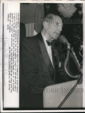 1955 Press Photo General Douglas MacArthur Speaking at Civic Banquet in LA