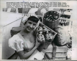 1957 Press Photo Augusta De Zoete Duth Tulip Queen holds wooden shoes, NY
