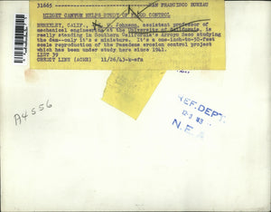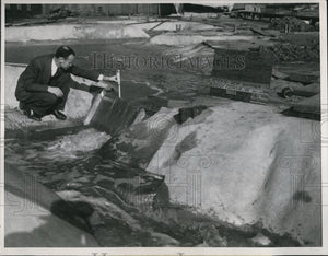 1943 Press Photo of Prof. J.W. Johnson next to a miniature dam. - nee04675