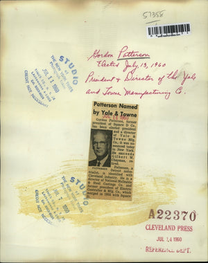 1960 Press Photo Gordon Patterson, President of Yale and Towne Manufacturing