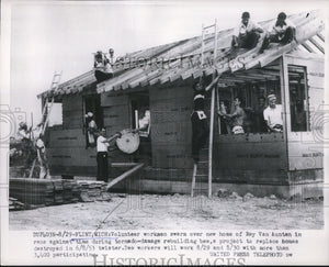 1953 Press Photo Flint, Mich workers rebuilding after tornado - nee13730