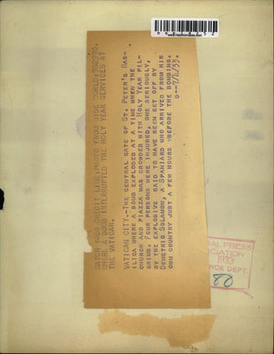1933 Press Photo Central Gate St Peters Basilica Vatican City Where Bomb Explode