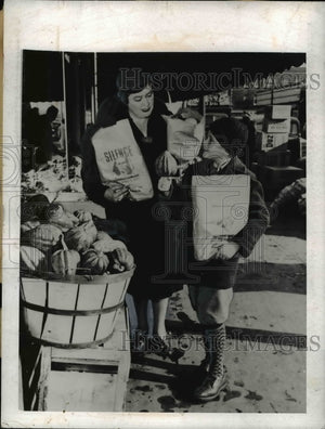 1943 Press Photo Gerald and Elizabeth Darrow Carry Home Groceries World War II