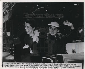 1961 Press Photo Mrs Douglas MacArthur and Son Arthur As Parade Passes