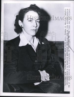1951 Press Photo Ann Remington, Testifying at Perjury Trial of Ex Husband