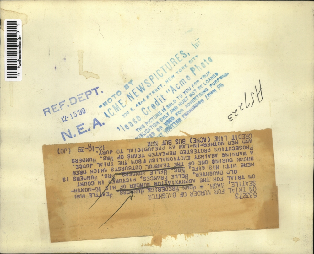 1939 Press Photo Seattle Wash Kohn F Wunders trail fo murder & wife
