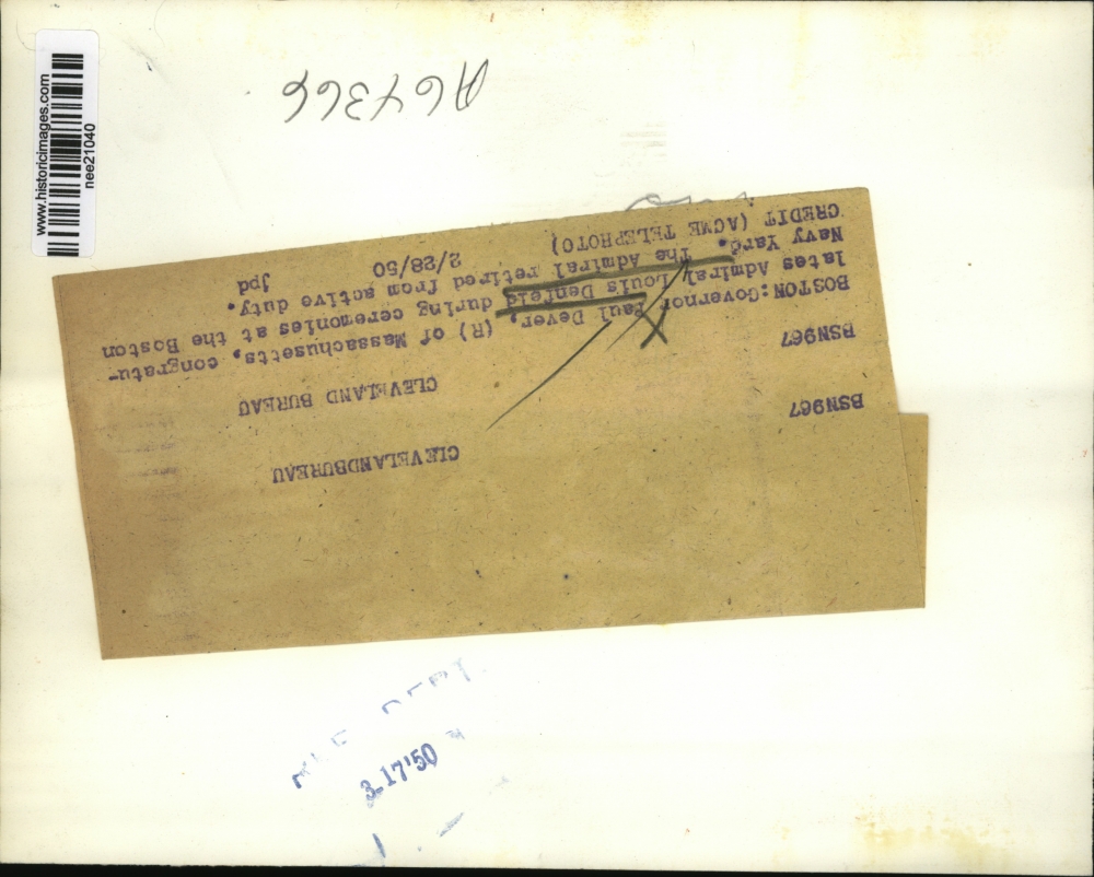 1950 Press Photo Paul Dever Congratulates Admiral Louis Denfeld Boston Navy Yard
