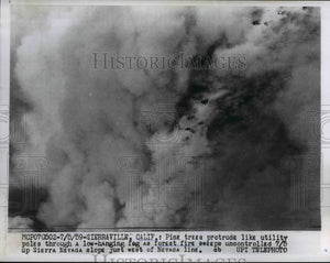 1959 Press Photo Pine Trees from fog as forest fire sweeps uncontrolled