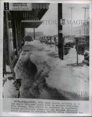 1955 Press Photo Scene at the streets of Sidney, Nebraska as the snow falls