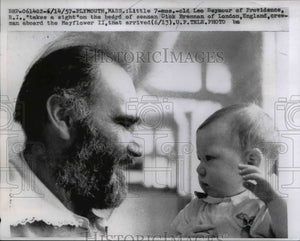 1957 Press Photo Sailor Dick Brennan Holds Baby Leo Seymour - nee25417
