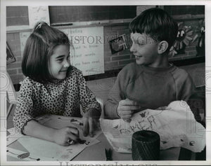 Press Photo Cleveland Elementary School Children Smile at Each Other - nee26342
