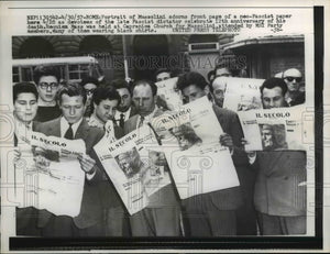 1957 Press Photo Portrait of Mussolini adorns front page of paper - nee26551