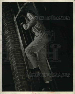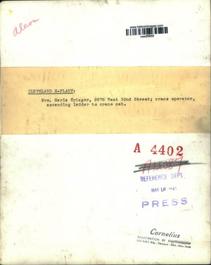 1943 Press Photo Mrs. Marie Krieger ascending ladder to crane cab - nee26958