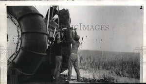 1936 Press Photo Oil Explorer Lifting Heavy Equipment into Marsh Buggy