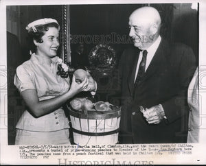 1956 Press Photo Martha Bell presents prize-winning peaches to Sam Rayburn