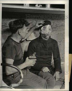 1933 Press Photo Maurice Deschamps of French Road Team Treated by Jack Heehan