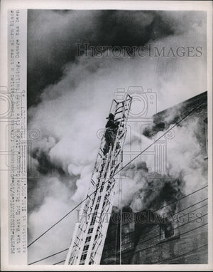 1952 Press Photo Cinnicnnati fireman battle three alarm blaze at Storage Company