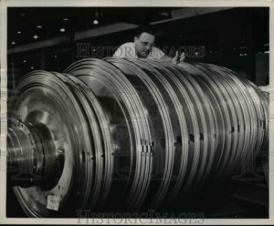 1950 Press Photo Turbine Rotor at General Electric Company, Lynn Mass