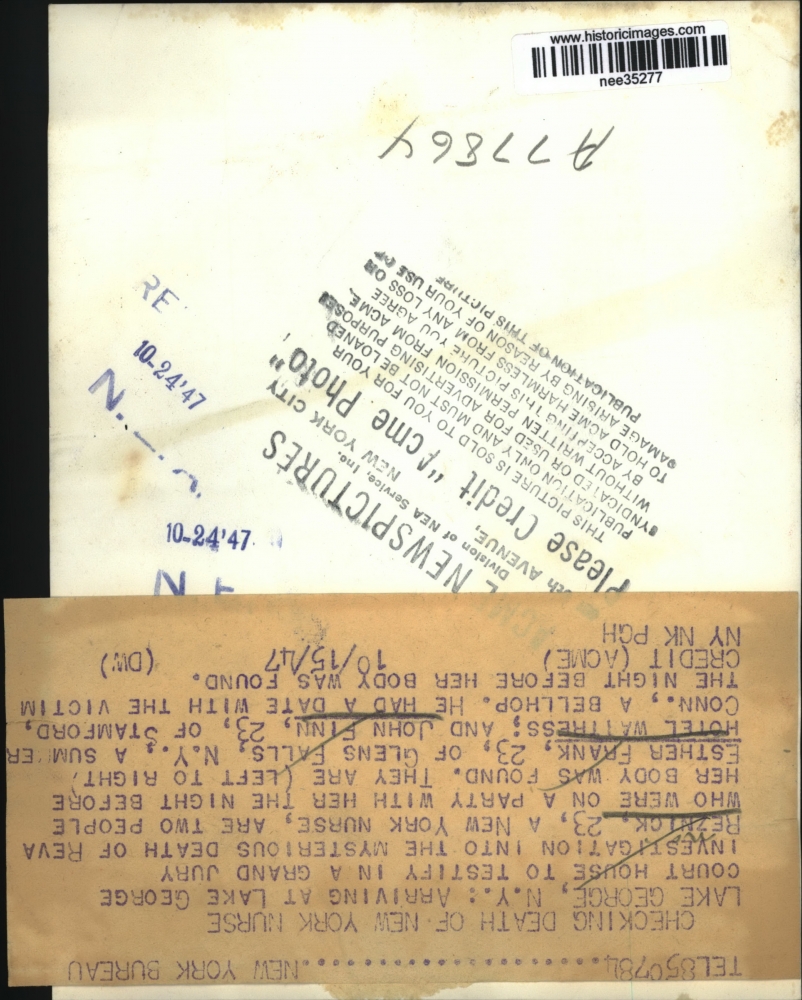 1947 Press Photo Esther Frank & John Finn had a date with the victim