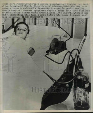 1947 Press Photo Morris Richardson Using Mechanical Bladder for 6 Months