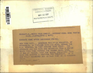 1937 Press Photo Mr&Mrs Philip LaFollette arrived from cruise, Panama Canal Zone
