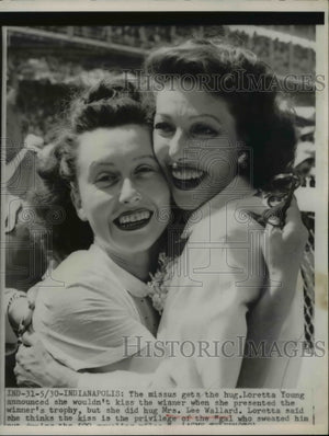 1951 Press Photo Loretta Young wont kiss winner, Mrs Lee Wallard, Indianapolis