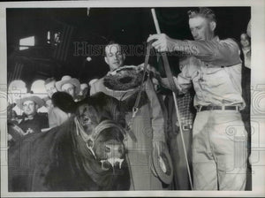1955 Press Photo Farmer Exhibits Black Angus Steer, Eitelmere II