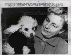 1957 Press Photo French Poodle Sue Zette and Owner Mrs. H.F. Preston - nee36727